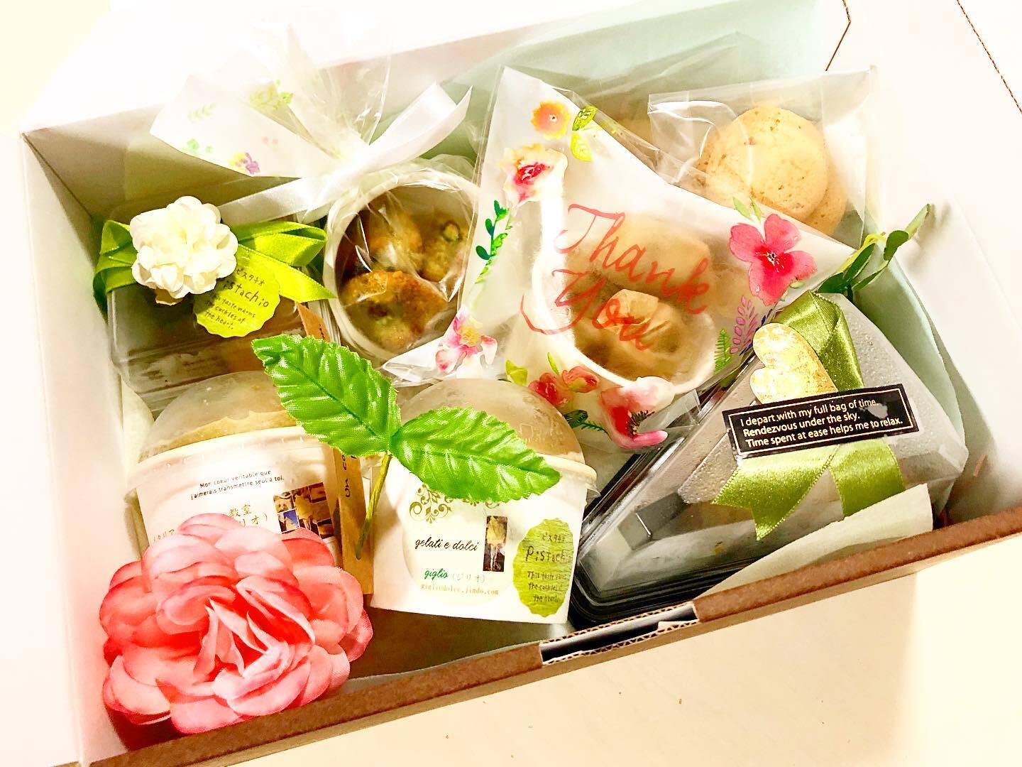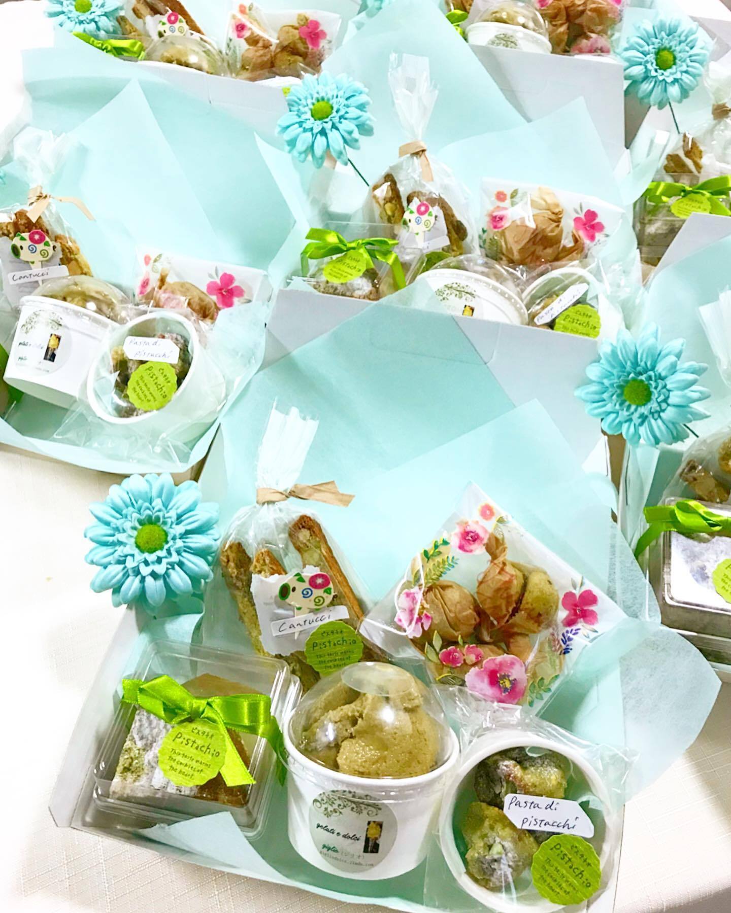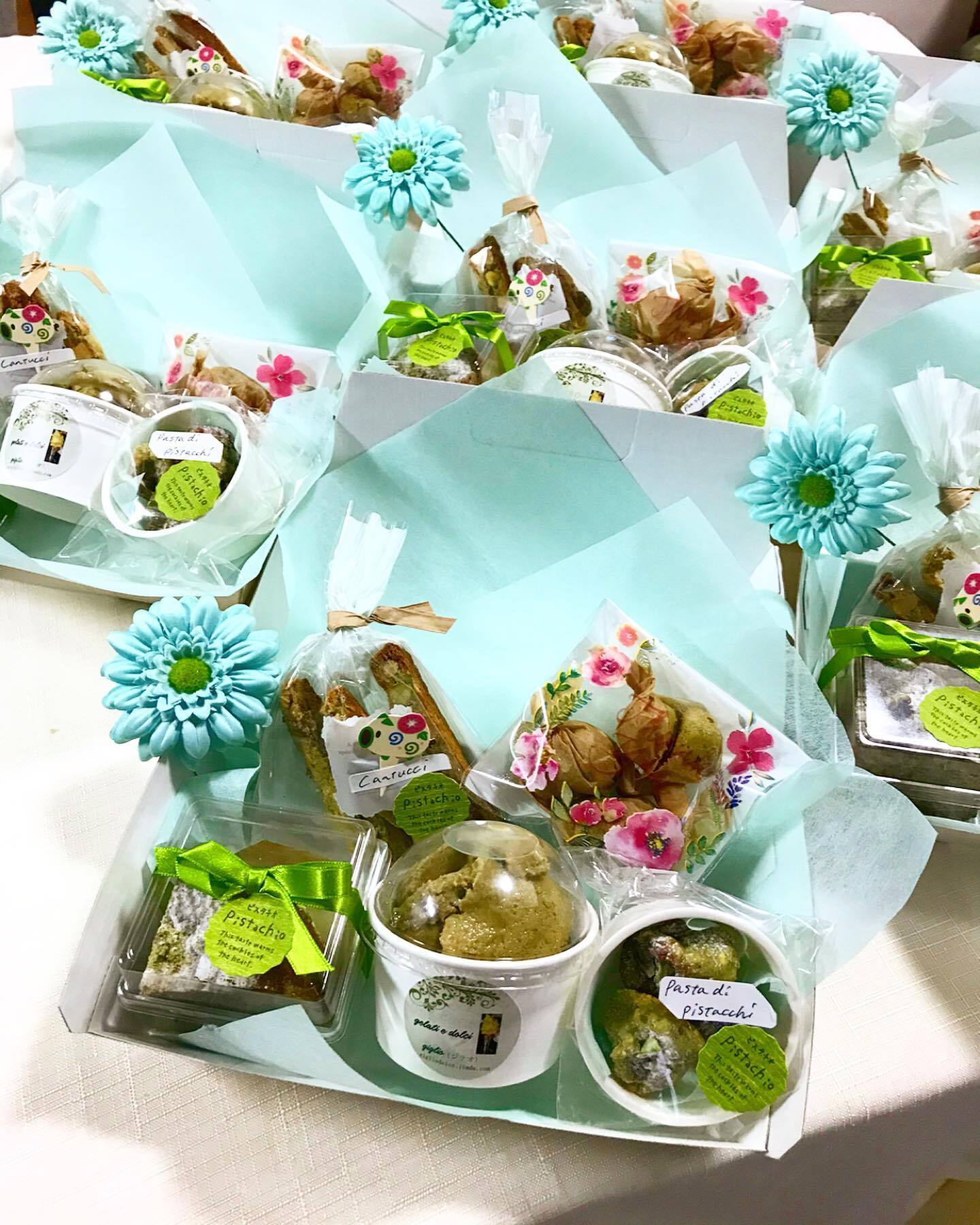 全てにピスタチオを凝縮したメニューで構成。教室人気No.1ピスタオジェラート入りのスペシャルセットです。ピスタチオジェラート2カップに、ピスタチオのトルタやクッキーが3種類、計5点が入ります。(内容はお任せになります。写真はイメージです。)